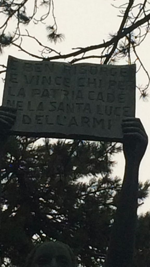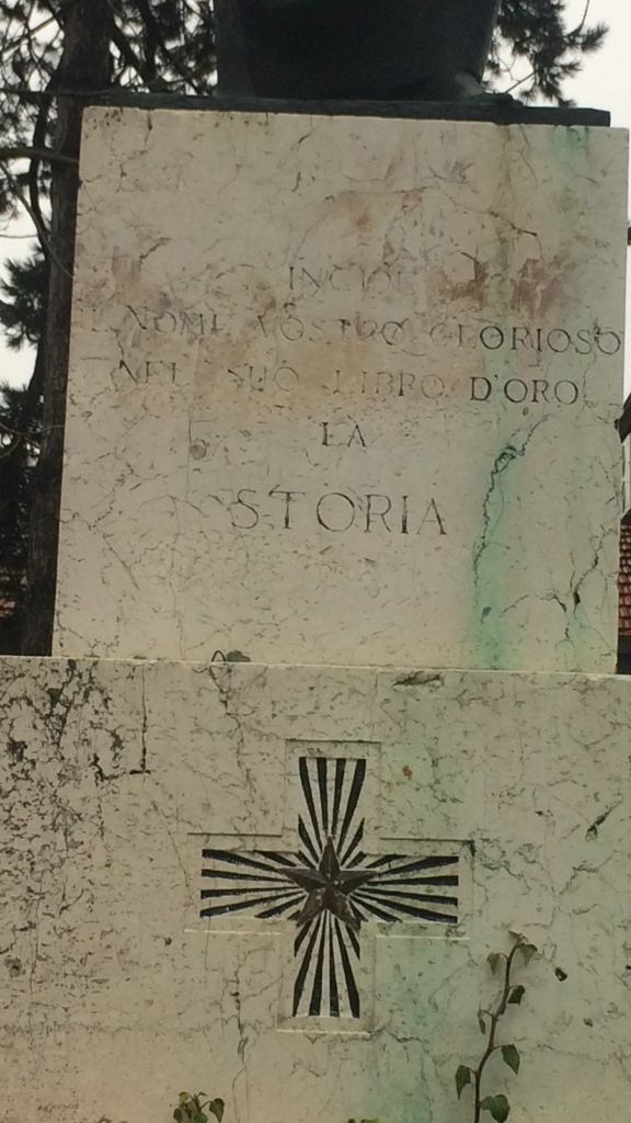 Sul marmo inferiore è presente una croce con all'interno una stella in bronzo.