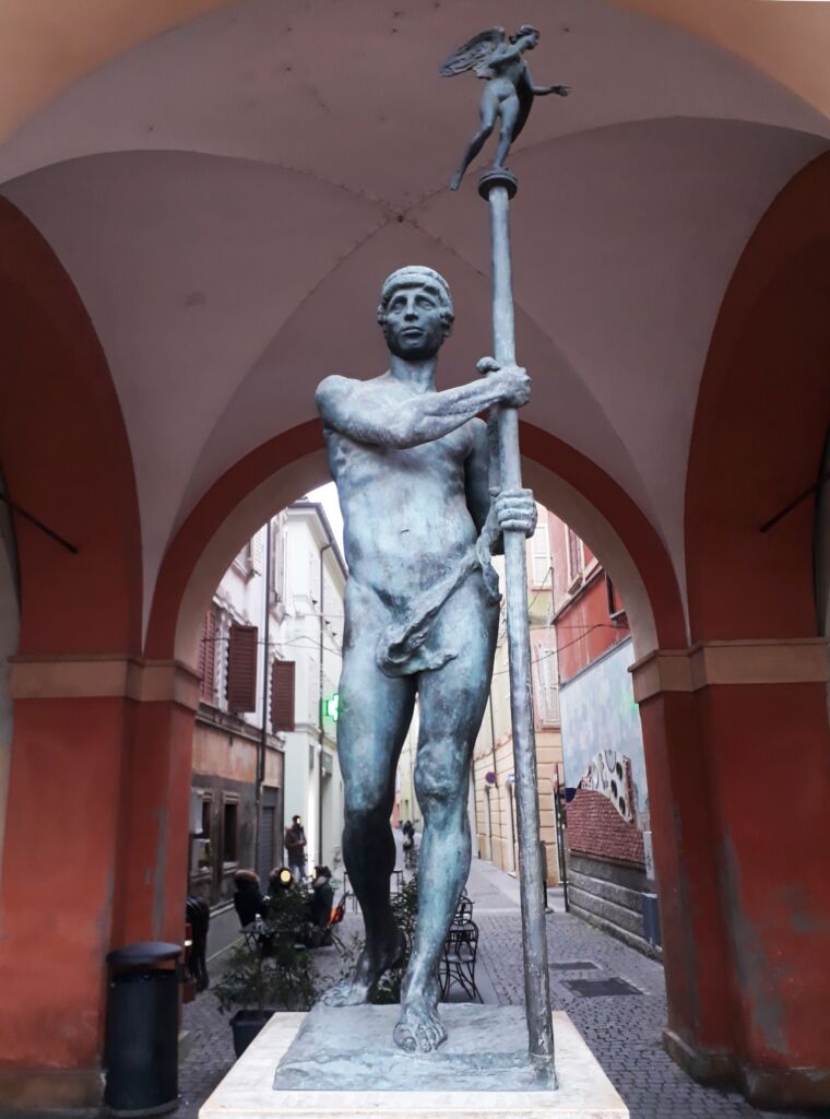 La statua è opera dello scultore Giuseppe Graziosi (Savignano sul Panaro 1879 - Firenze 1942). Egli fu docente nelle Accademie di Brera, di Napoli e dal 1926 di Firenze. Realizzò monumenti per varie altre città italiane ed estere (es. i monumenti ai Caduti di Novellara (RE), Savignano e San Cesario (MO).