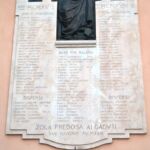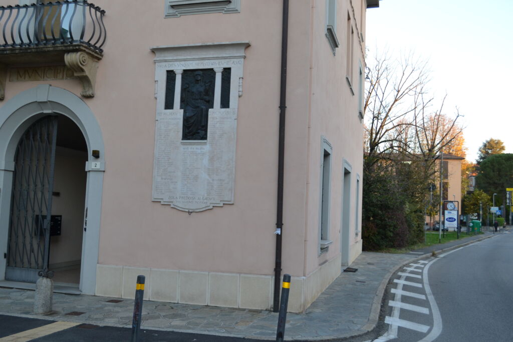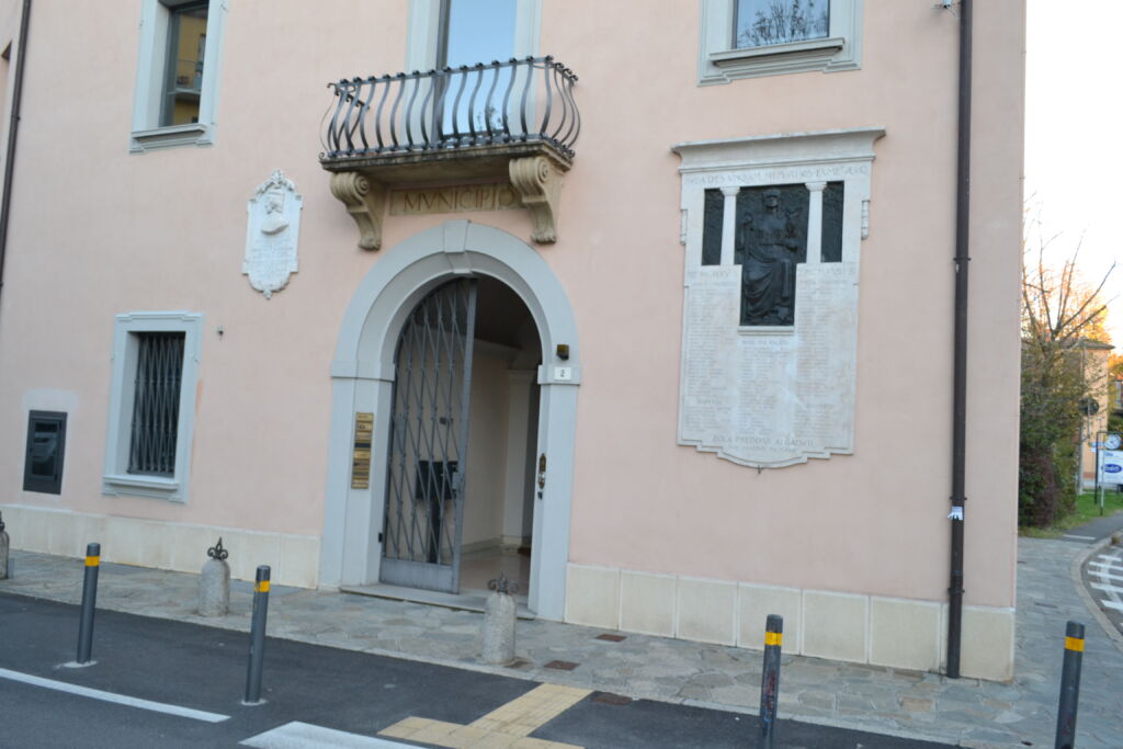 - Sulla facciata principale dell’ex Municipio alla destra del portone d’ingresso.