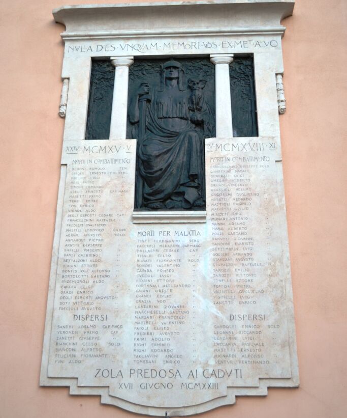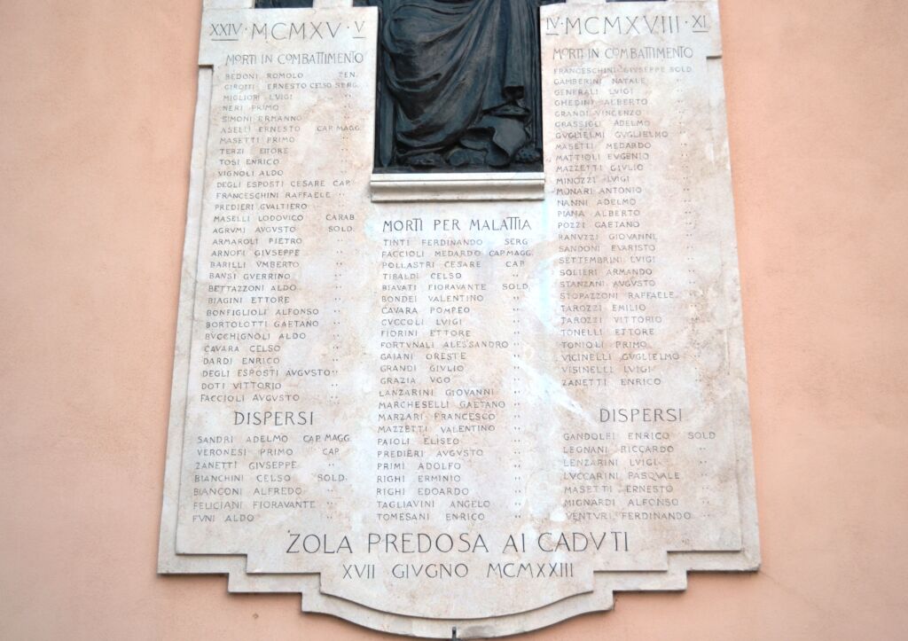 - Il marmo reca i nomi di 95 caduti zolesi, ma un documento dell’Archivio Storico Comunale ne elenca 137.