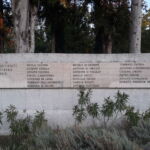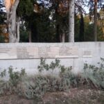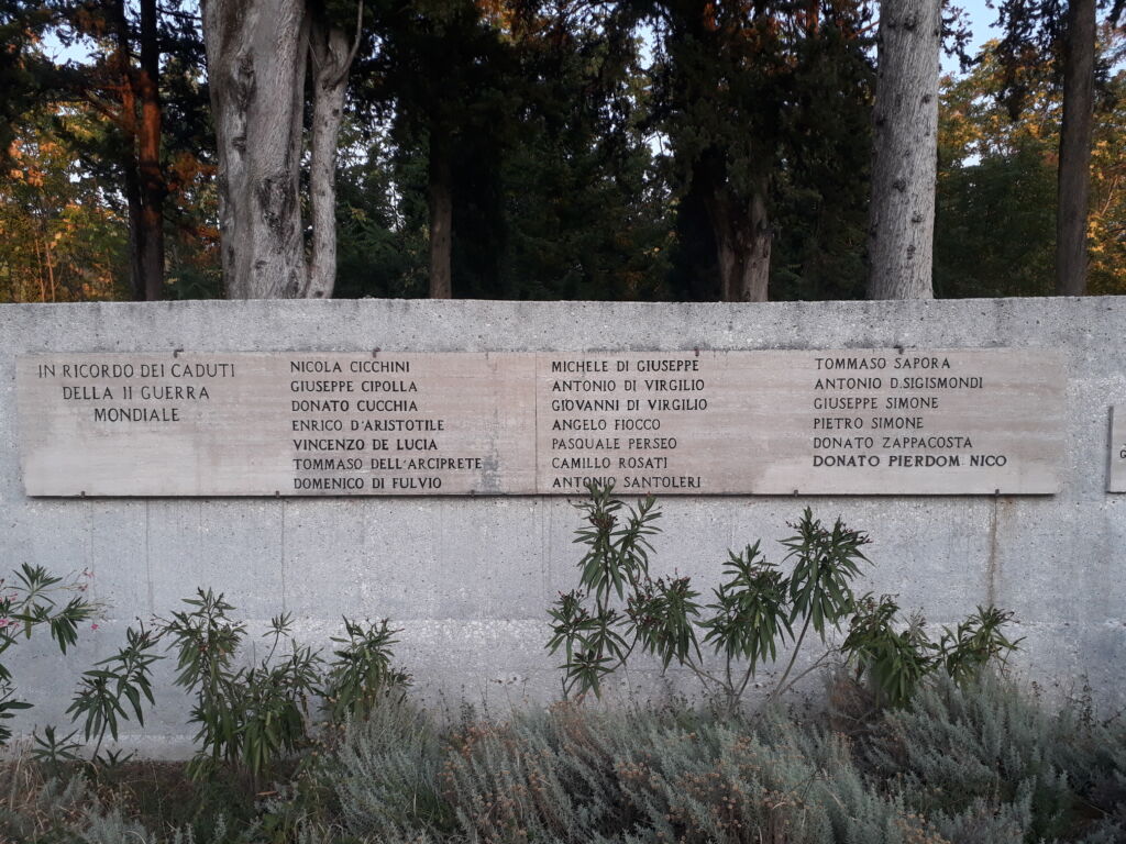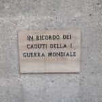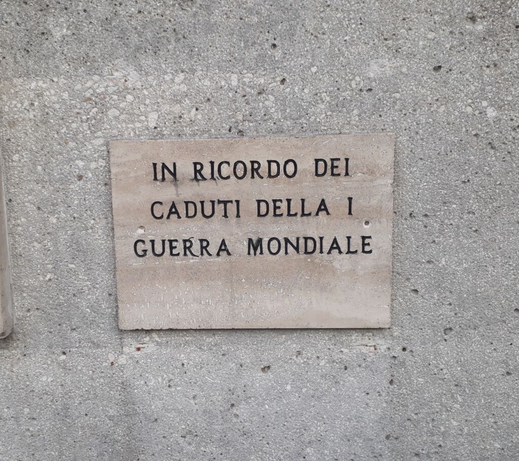 Sulla destra delle lastre c’è un’altra piccola lastra di marmo con la dedica ai caduti della prima guerra mondiale il cui monumento è presente nello stesso parco.