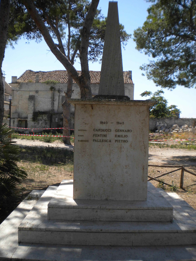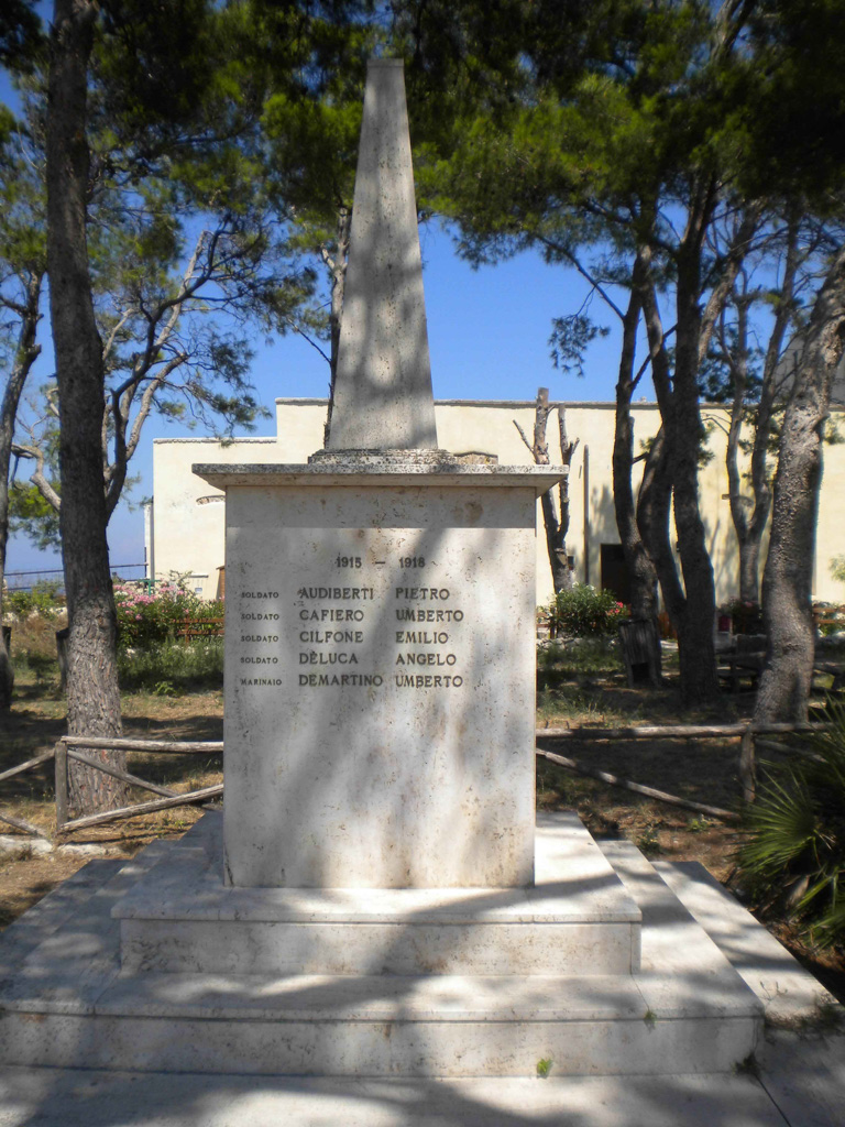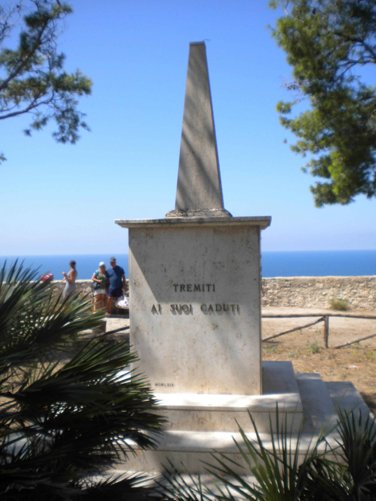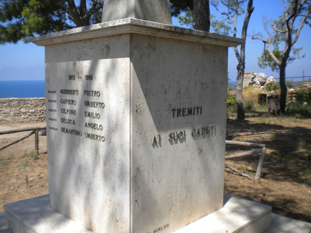 Il monumento, che si trova in un’area verde nell’isola di San Nicola, ricorda i Caduti tremitesi nel corso della prima e della seconda guerra mondiale. E’ composto da un basamento di forma cubica su cui poggia una colonna quadrangolare. Il monumento è rialzato da una base di tre scalini.