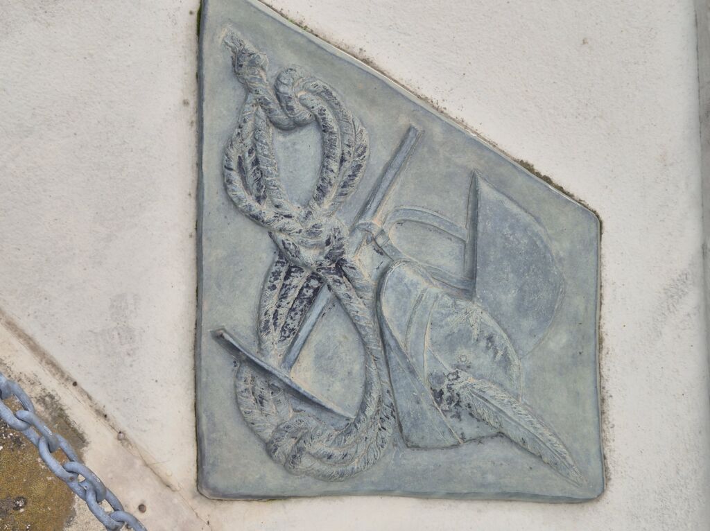 Davanti al complesso trova posto un leggio di ferro con due targhe bianche affisse su di esso.