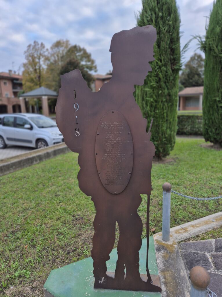 A sinistra del Monumento si trova la sagoma di un soldato in acciaio corten, che rappresenta tutti i militari austro-ungarici morti nel campo di prigionia di Arre.