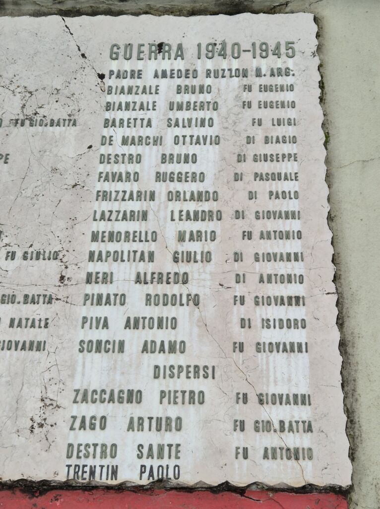 Il 25 aprile 2023 venne inserito nell’elenco dei Dispersi sul Monumento ai Caduti e sui cippi lungo via Cimitero il nome di Trentin Paolo, sommergibilista nato ad Arre nel 1914, morto nell’affondamento del suo natante “Lo Zaffiro” il 10 giugno 1942.