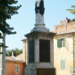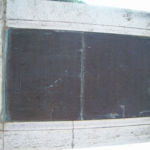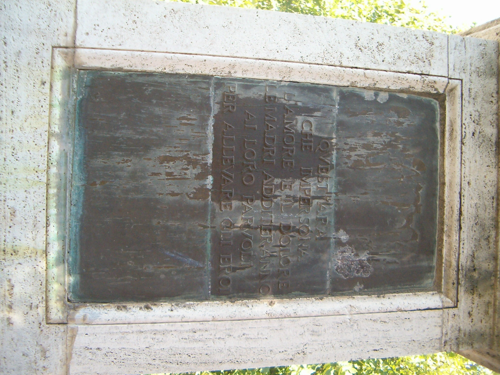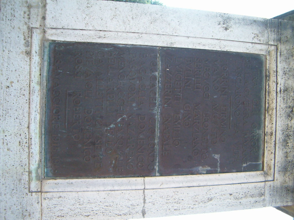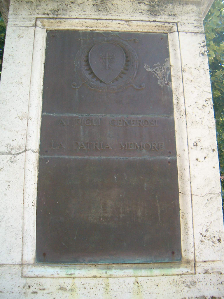 - Basamento su tre gradini di pietra. Stele di marmo con lapidi di bronzo.