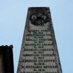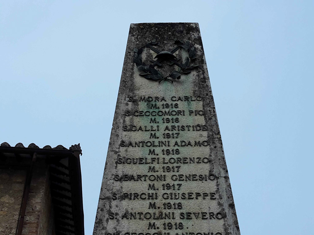 - Sul monumento, corone d'alloro in bronzo con al centro spade incrociate con elmetto da soldato della prima guerra mondiale