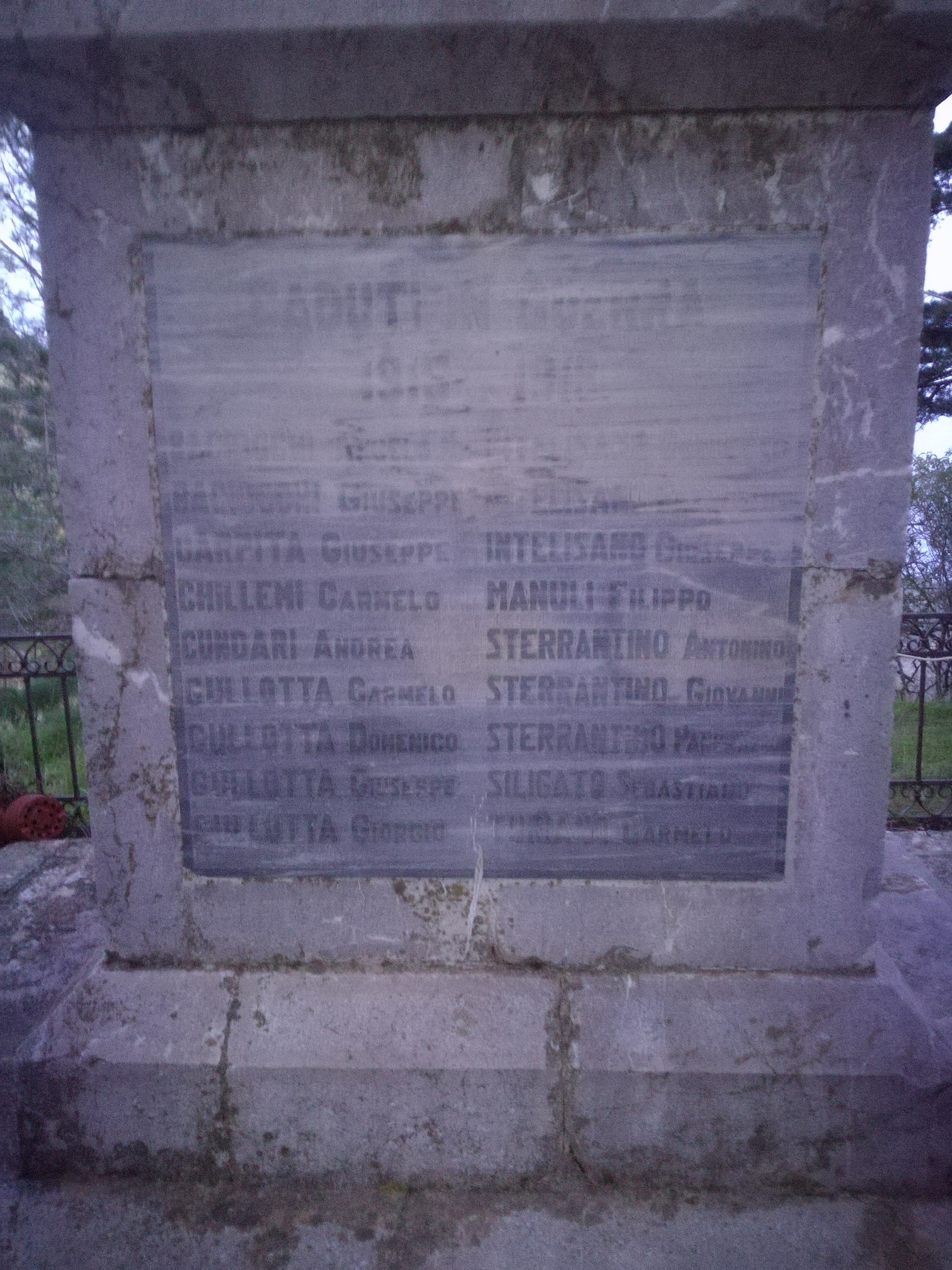 Le notizie storiche e sulle caratteristiche dell'opera sono state tratte dal testo, Memorie della Grande Guerra - Monumenti ai caduti nella provincia di Messina, a cura di Luigi Giacobbe, Di Nicolò Edizioni, 2016.