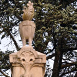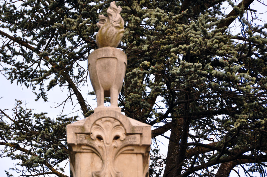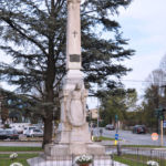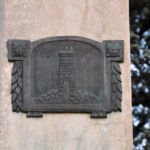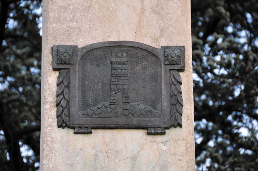 Statua in marmo e obelisco in pietra, stemma in bronzo