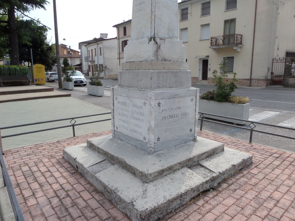 - Lato ovest: in alto ( Italia chiamo 1915-1918, questi animosi cadderò per il dovere Castelnuovo Asolano, la memoria infutura)