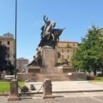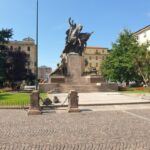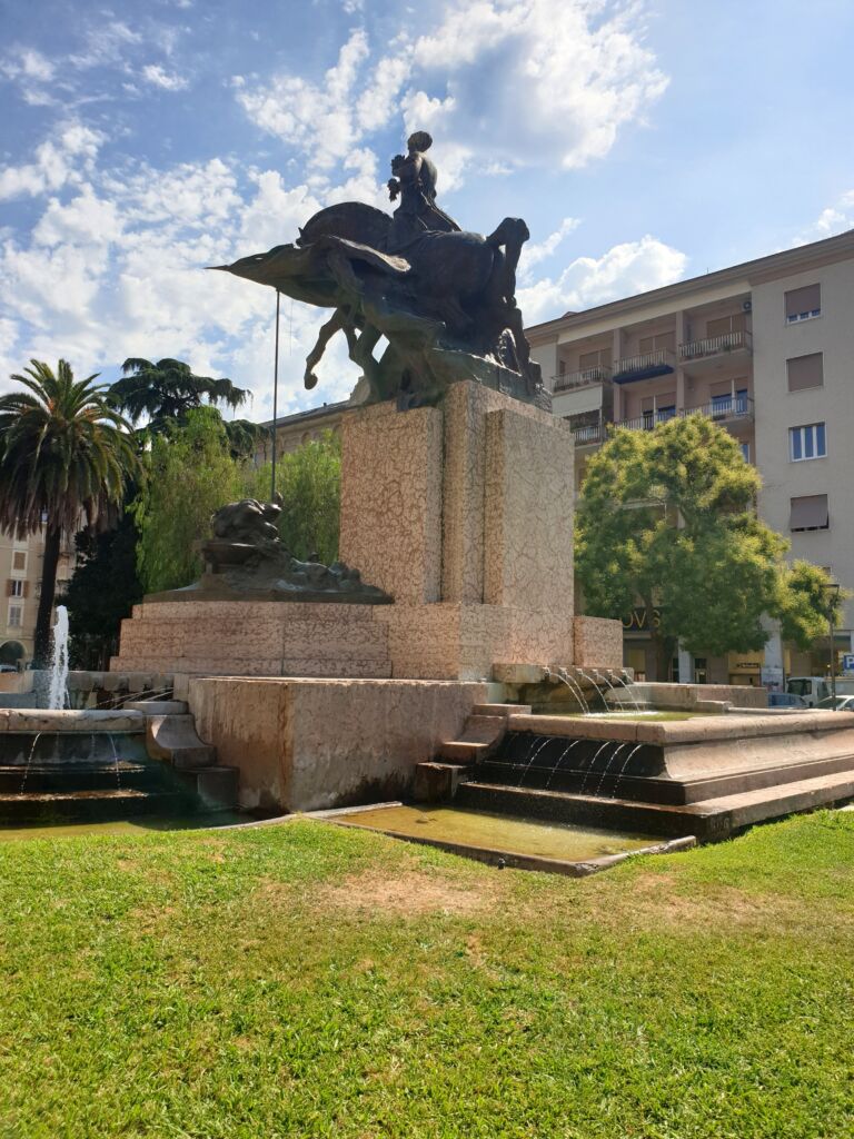 - ampia aiuola alberata e recintata, al centro della piazza con panchine.