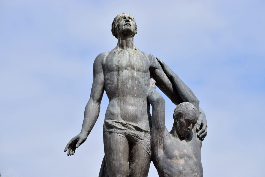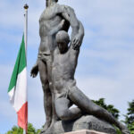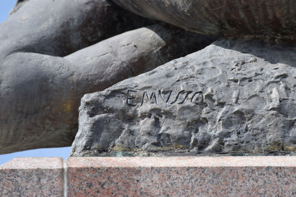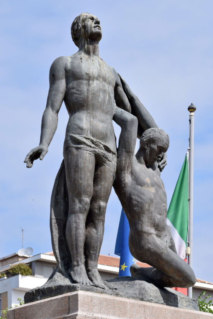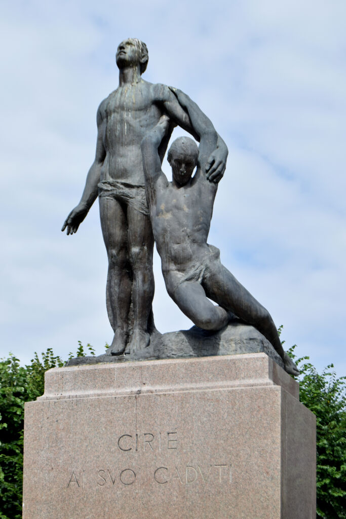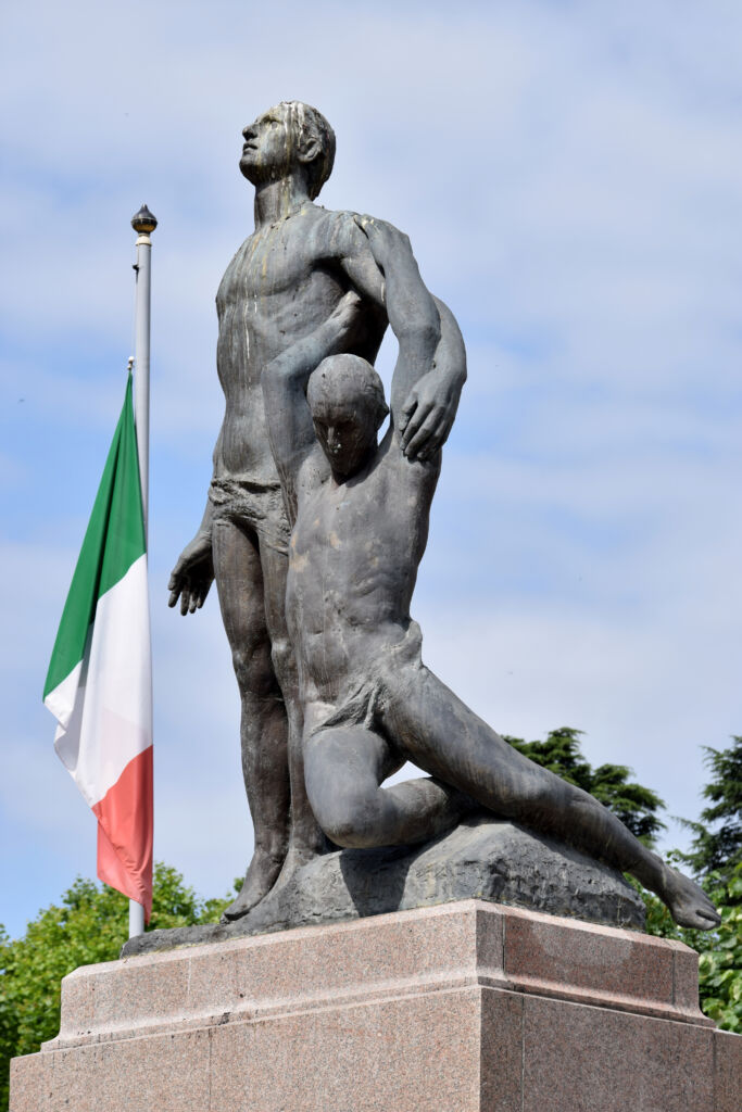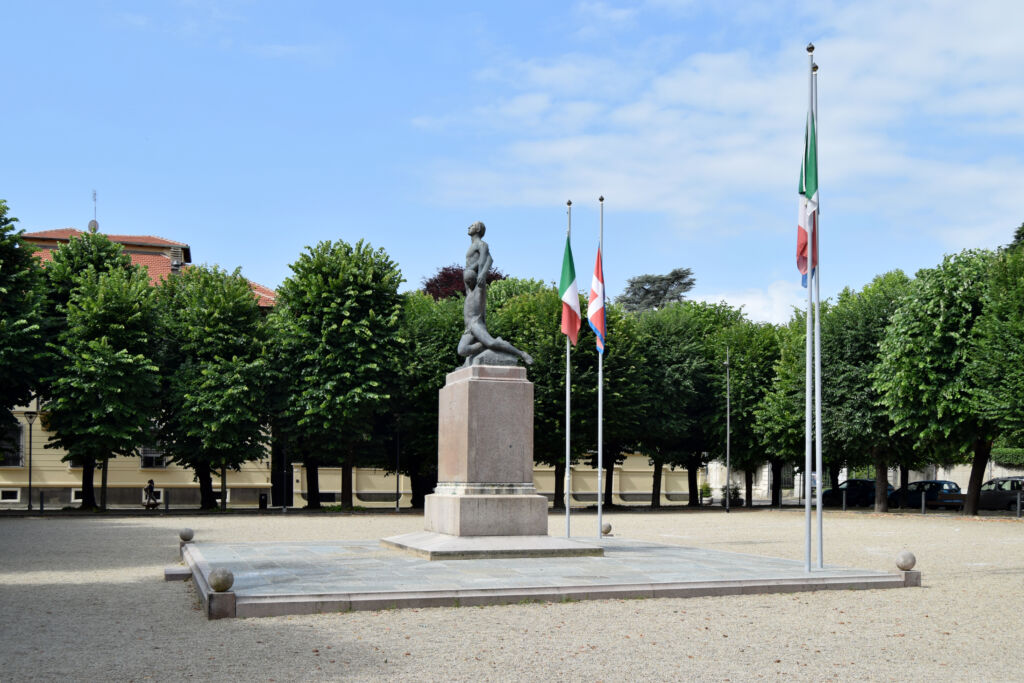 - Cippo in granito; scultura in bronzo. Presenti quattro aste portabandiera.