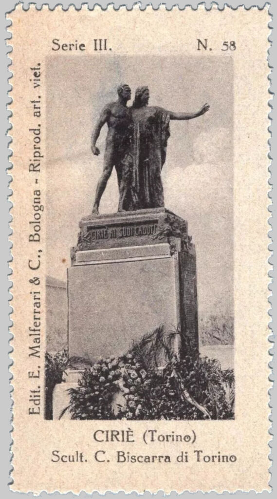 Le opere di entrambi gli autori, Biscarra qui a Ciriè, e Musso a Chivasso, subirono quindi la distruzione a seguito degli eventi del secondo conflitto mondiale, quali principalmente la requisizione dei materiali metallici a scopi bellici voluta nel 1940-42 dal regime fascista, ed in misura molto minore i danni causati dai bombardamenti alleati o dalla rimozione dei simboli della retorica fascista.