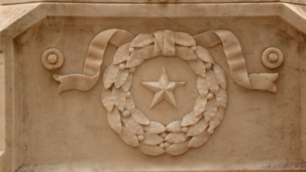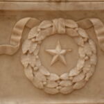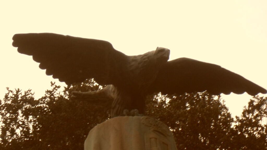 Basamento e colonna in marmo bianco. Aquila in bronzo. Iscrizioni incise in bronzo