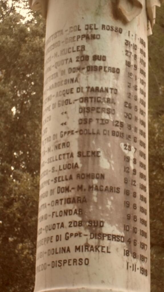 Il monumento, realizzato dall'artista Francesco Guglielmo è stato voluto dall'amministrazione comunale per onorare la memoria dei Caduti del paese nella Grande Guerra.
