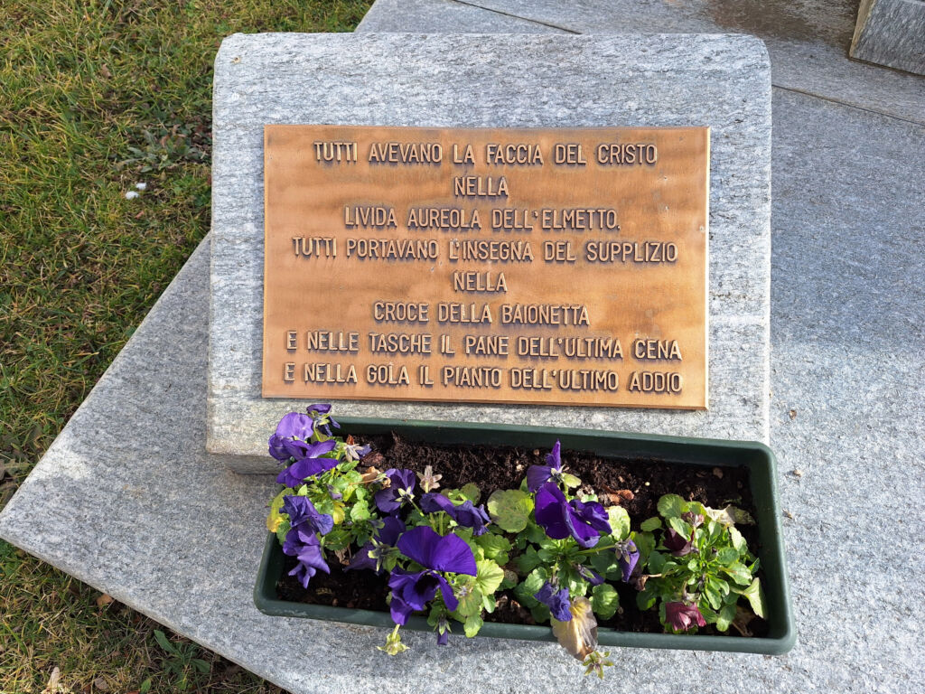 La stessa fonte ricorda che le parole della poesia di Carlo Delcroix, qui riportate sulla targa laterale, sono incise su una lastra di zinco all'entrata della galleria del Castelletto delle Tofane di Rozes, in provincia di Belluno.