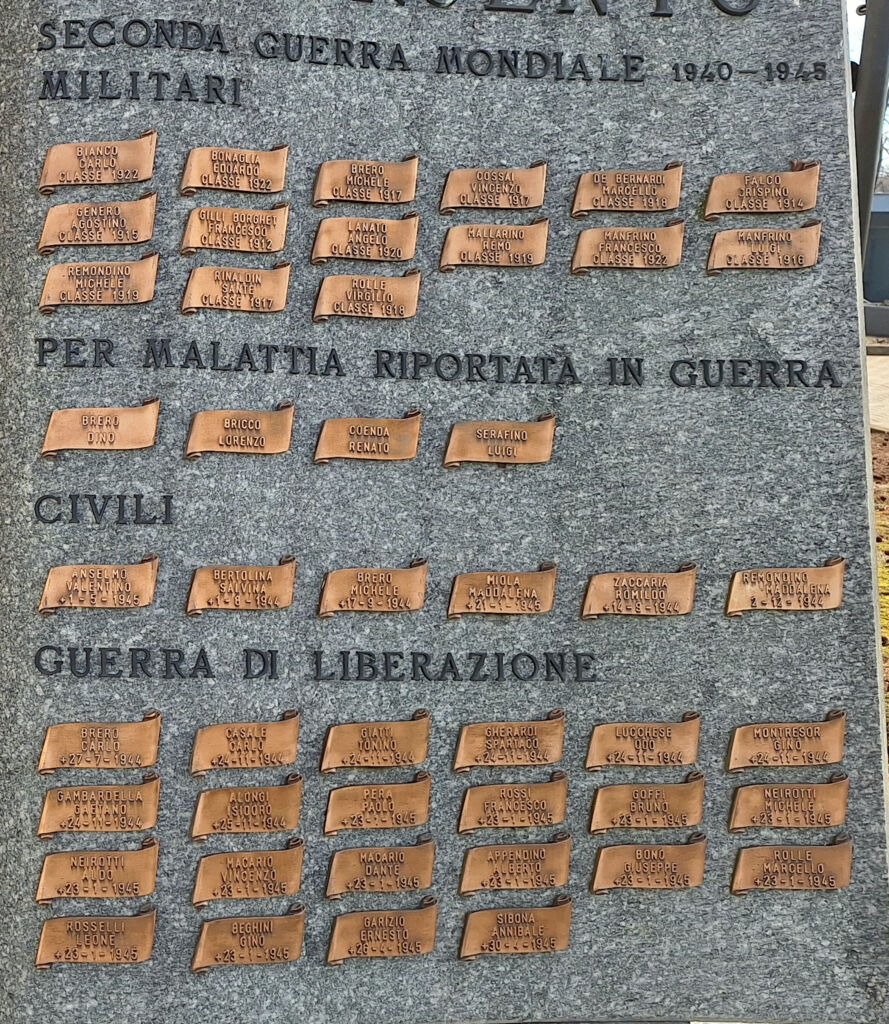 I Caduti di Druento sono commemorati anche su quattro lapidi poste sulla facciata del Palazzo Comunale e nel monumento ai Caduti della Libertà, presente nello stesso cimitero.