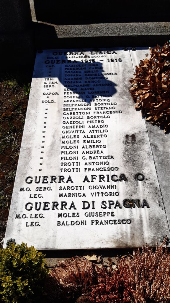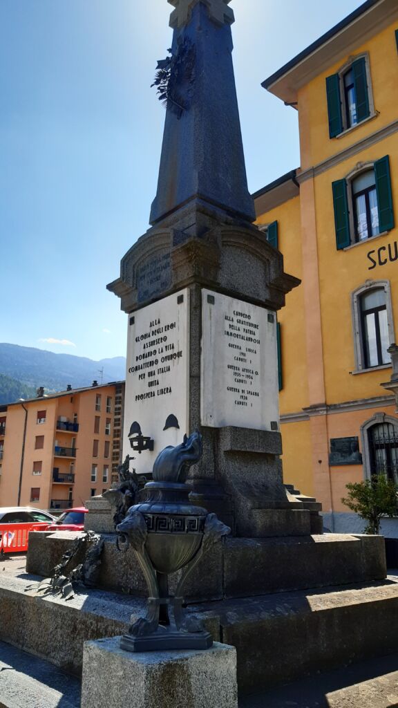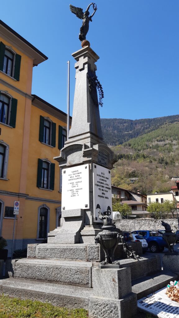 - Il monumento venne inaugurato nel primo dopo guerra. La statua in bronzo venne richiesta dallo Stato nei primi anni ’40 per rifonderne la lega metallica per far fronte alle esigenze del secondo conflitto mondiale. Nonostante il nullaosta alla fusione, la statua si preservò dalla requisizione.