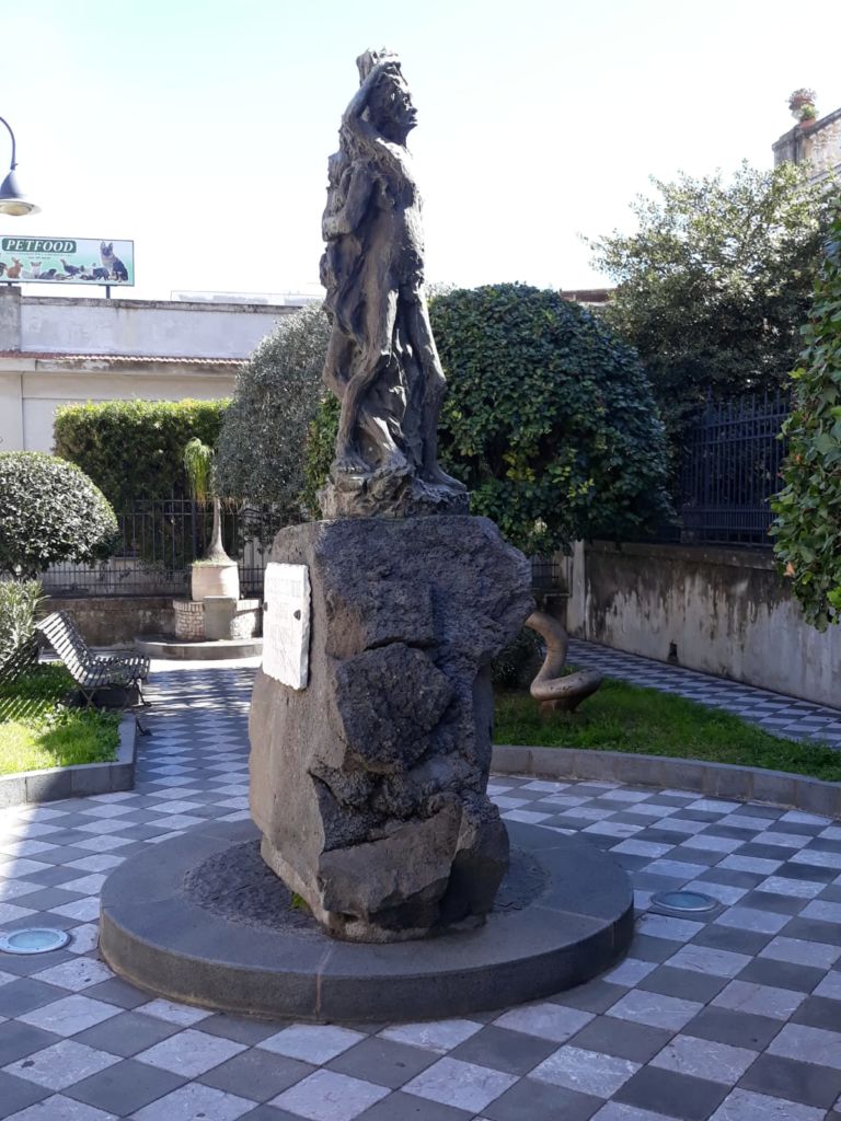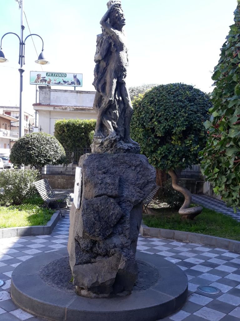 L'opera è stata realizzata in due giorni, su commissione del sindaco di Fiumefreddo, direttamente in fonderia a Milano, per ottimizzare tempi, costi ed energie. Il primo giorno è stato dedicato a imbastire l’ossatura dell’opera, l’armatura in ferro e in fil di ferro con le tante “stellette” che avrebbero imbrigliato un metro e ottanta di peso statuario e che servivano per incapsulare la creta. L'opera è stata realizzata con la collaborazione di un'intera squadra di operai: alcuni adibiti alla cera, altri alla fusione interrando o sterrando blocchi di creta, altri dediti all’esecuzione di gessi o al cesello del bronzo; il Mariani, proprietario della fonderia, ha realizzato la patina. Il secondo giorno l'opera è stata completata con l'apposizione della firma in calce al monumento.