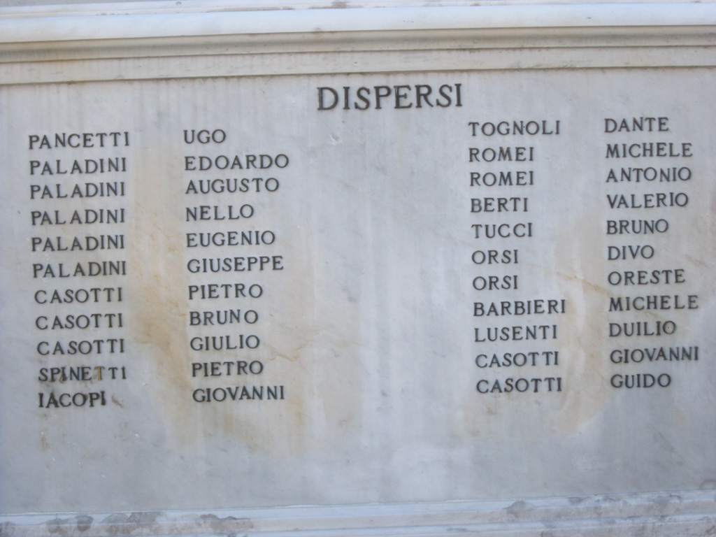 CASOTTI MICHELE BARBIERI GIUSEPPE ROMEI AMBROGIO ROMEI GIUSEPPE CASOTTI PIETRO CANINI EGIDIO RAFFAGNAGI DOMENICO CASOTTI EUFEMIO CASOTTI NICOLA TUCCI LUIGI ROMEI AGOSTINO ORSI DOMENICO TORRE ADOLFO TUCCI GIOVANNI CASOTTI PIETRO CASOTTI ATTILIO ROMEI PIETRO TUCCI GIUSEPPE TOGNOLI GIOVANNI ROMEI RAFFAELLO CASOTTI ANGELO URBANI ERMINIO ROMEI PIETRO CANINI DINO ORSI VALERIO CASOTTI UGO PANCETTI MATTEO TUCCI TUGLIO BRUGIATI GIUSEPPE ROMEI PAOLO.