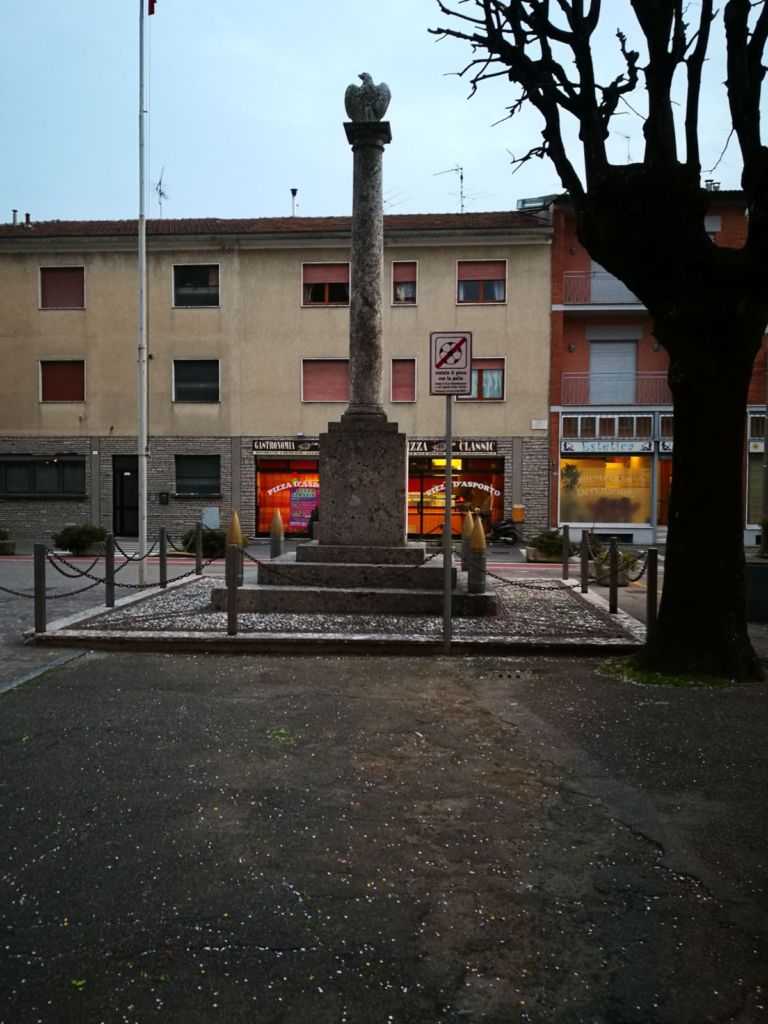 - Tutto il monumento è in pietra tranne l’aquila situato in alto che è un scultura e i quattro proiettili alla base.