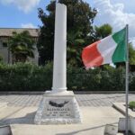 - Ramoscello di rosa. A margine, asta porta bandiera con bandiera italiana.