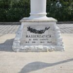 - Struttura in marmo; elementi in pietra nel basamento; iscrizione ed elemento floreale in bronzo.