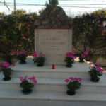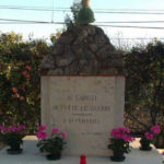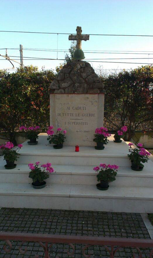 - Croce e un elmo da fante della Grande Guerra sulla cima del monumento.