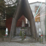 - Si tratta di un monumento insolito, molto suggestivo, infatti questa sorta di proiettili che riportano i nomi dei combattenti, accompagnano l'osservatore lungo il viale fino all'edicola che contiene su una lastra in marmo una scultura raffigurante la Madonna. Vi sono molti collegamenti con la natura grazie all'inserimento di piante quali l'edera e fiori, quali la ripetizione di rose e molti riferimenti patriottici.