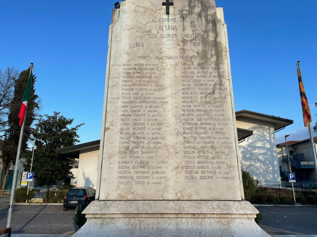 Il monumento di Resana, dedicato ai Caduti delle due guerre mondiali, è composto da un corpo centrale e due obelischi laterali (trittico).