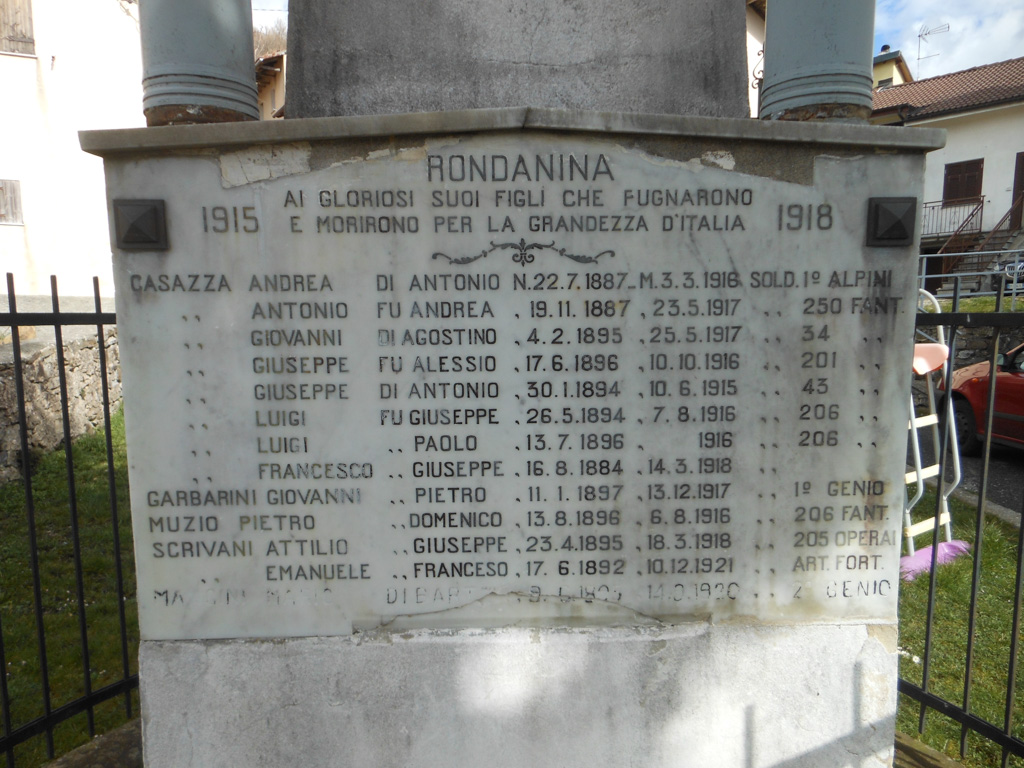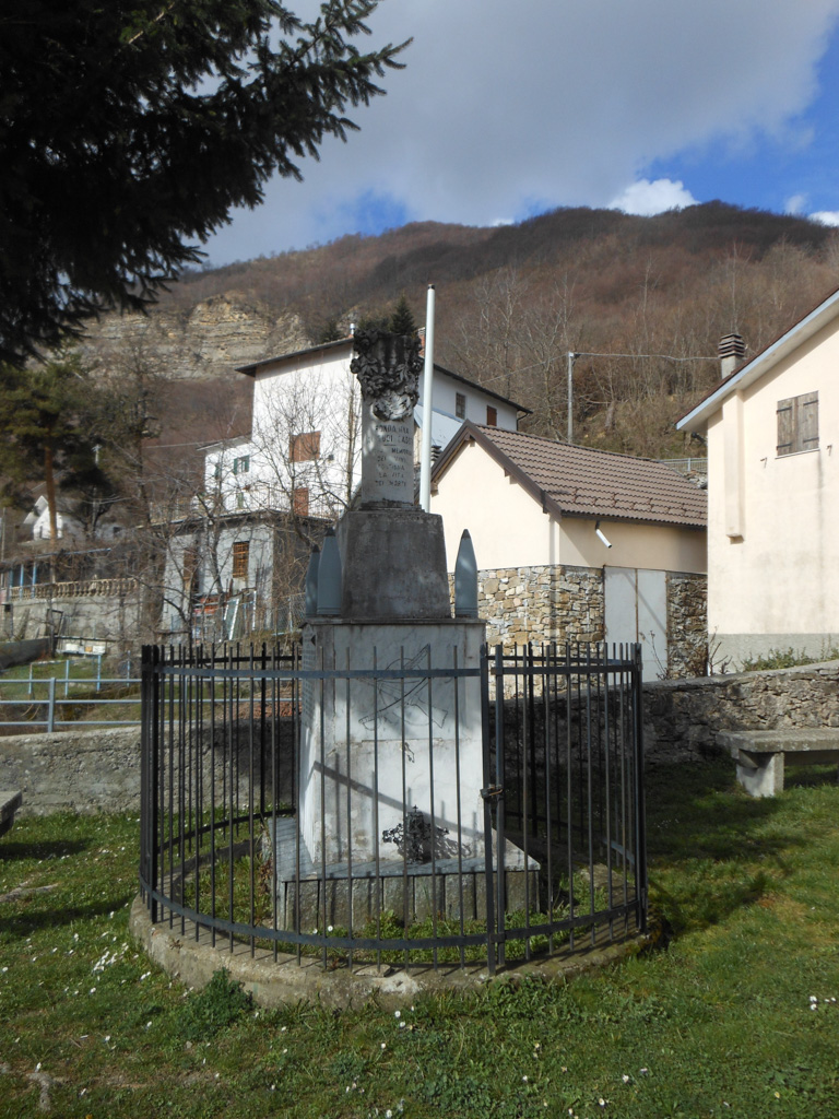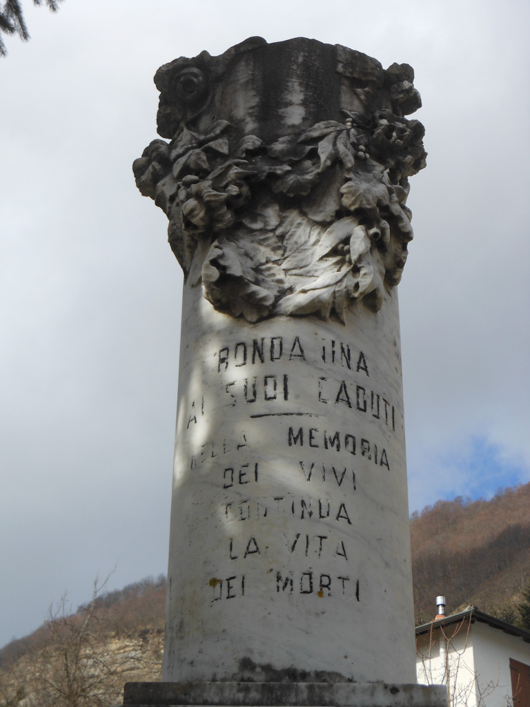 - Monumento annerito dal tempo; dedica e targhe di difficile lettura.