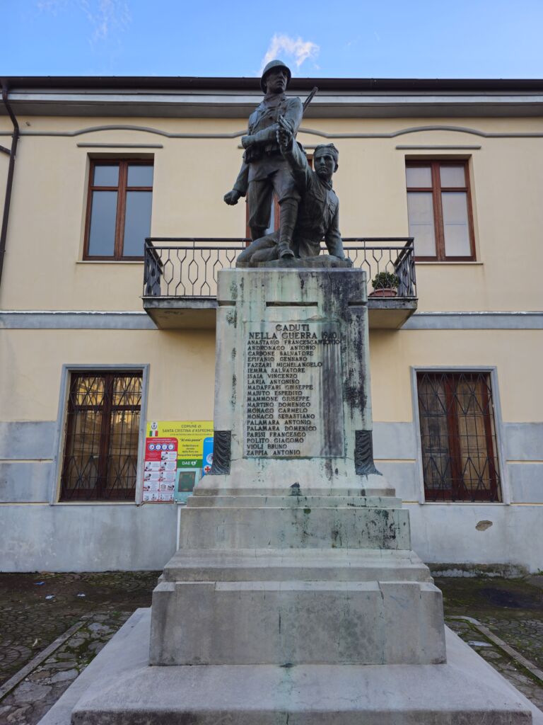 - Il Monumento ai caduti venne realizzato a Firenze da Concesso Barca e nel 1928 fu innalzato a Santa Cristina. (R. Liberti, Concesso Barca, scultore calabrese ( 1877-1968), in Brutium a. L, Luglio-Settembre 1971, n. 3, p. 15; Emilio Barillaro, Calabria : guida artistica e archeologica (dizionario corografico) Cosenza, Pellegrini, 1972 p. 342; Testo manoscritto di Antonio Violi: Monumento ai caduti della prima e della seconda guerra mondiale di Santa Cristina d'Aspromonte).