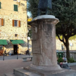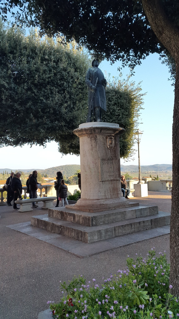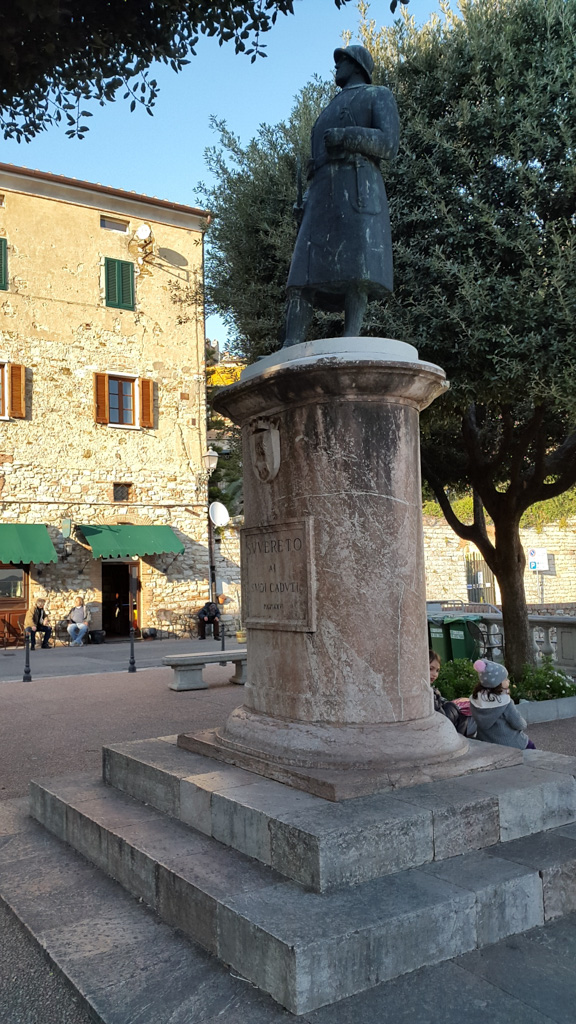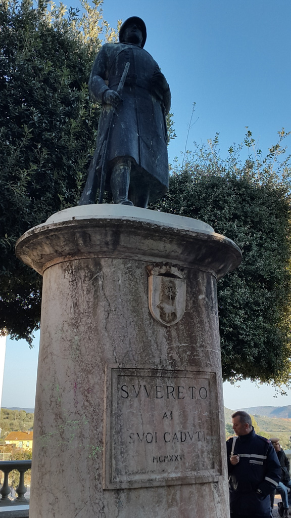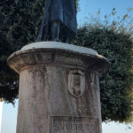 - Basamento e piedistallo in pietra, statua in bronzo.