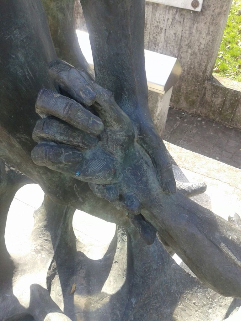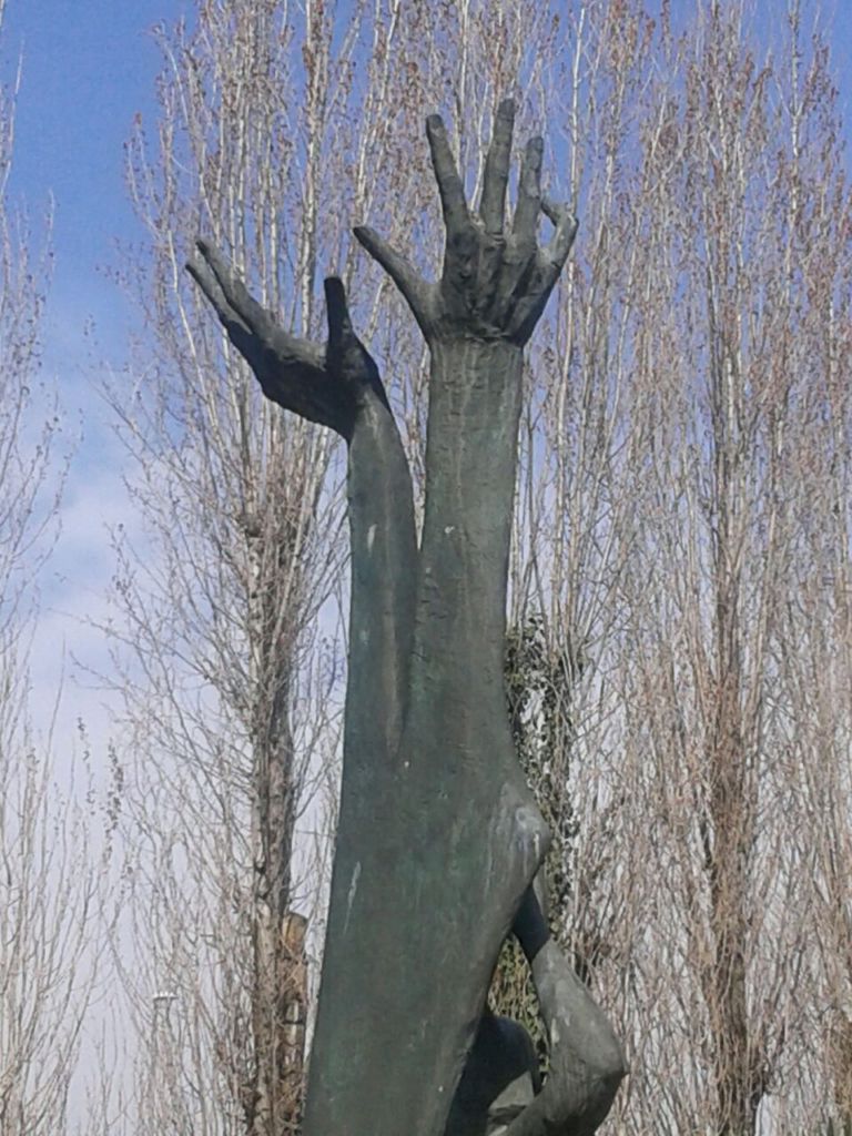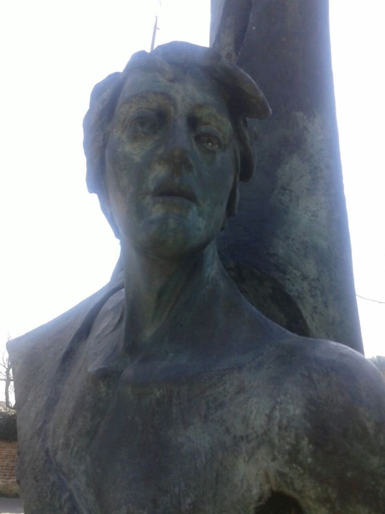 La corona d'alloro legata alla statua con del fil di ferro e una palma nata lì davanti e cresciuta un bel po' coprono buona parte del monumento: che peccato!