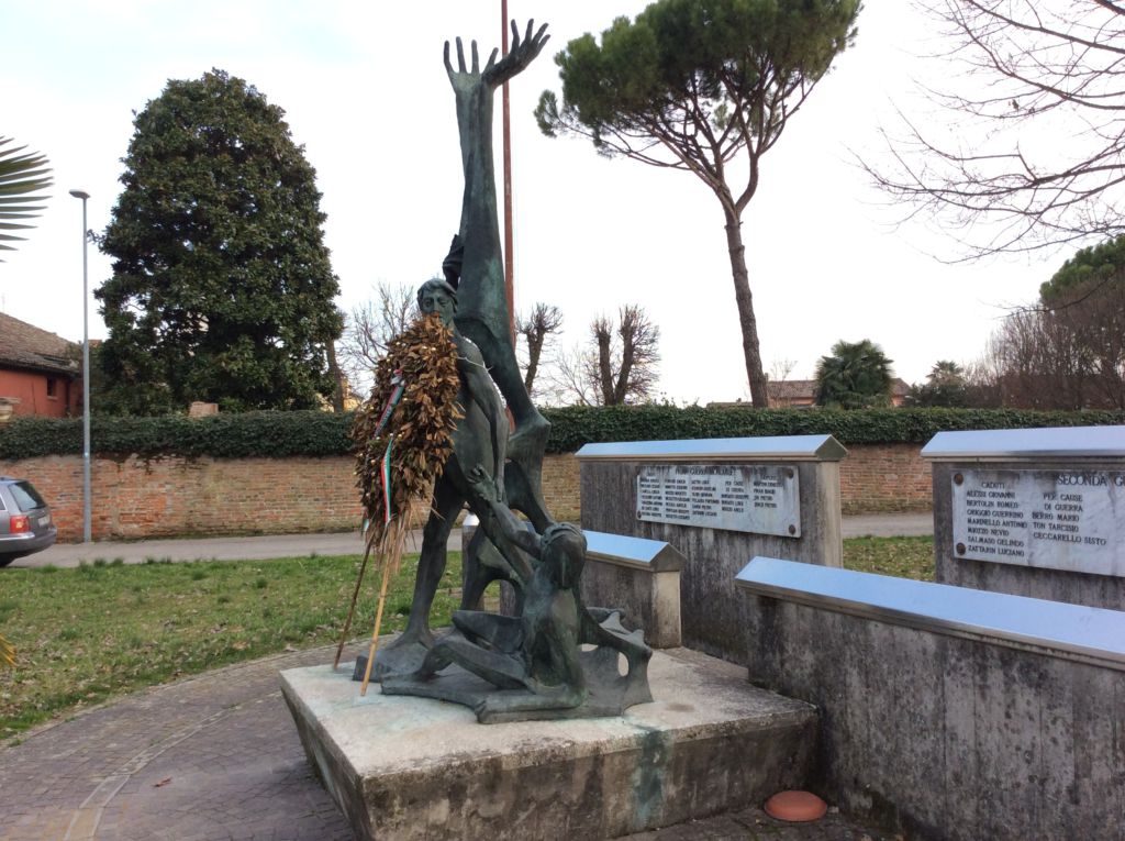 - Questo nuovo monumento fu voluto dall'allora parroco Don Antonio Bigolin agli inizi degli anni Novanta. Fu individuata un'area di proprietà comunale e furono raccolte donazioni private per finanziare l'opera. I donatori rimasero anonimi, ma i loro nomi sono racchiusi in una bottiglia che fu murata alla base del monumento (Fonte: Sig. Francesco Piccolo, Presidente della sezione di Tavo dell'Associazione Nazionale Combattenti e Reduci)