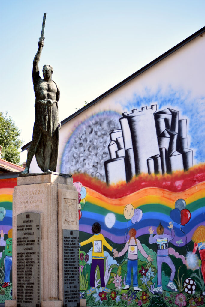 - Il grande murales che campeggia alle spalle del Monumento ai Caduti è stato inaugurato il 4 maggio 2013.