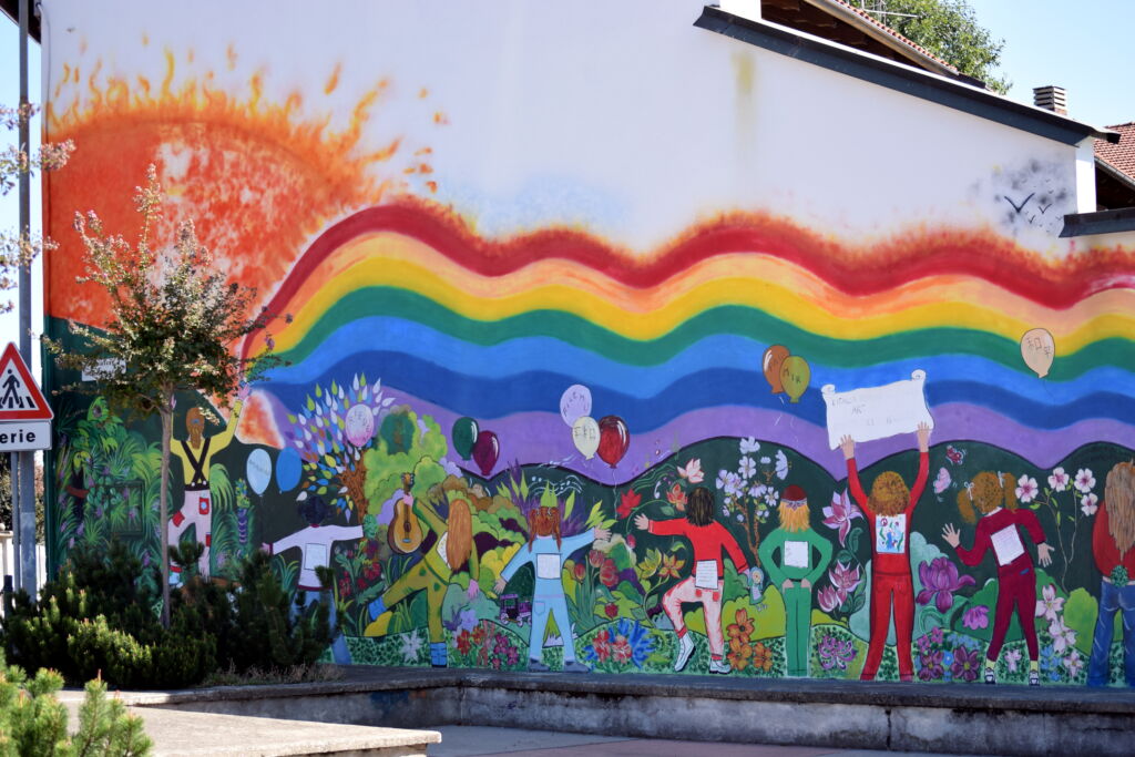 Come ha spiegato l’insegnante Daniela Mussano, l’ispirazione è stata quella dell’articolo 11, “l’Italia ripudia la guerra”, e si è pensato che riportare questo messaggio su uno dei muri maggiormente in vista del paese, sarebbe stata una buona idea. Il muro che delimita la piazzetta del monumento è sempre stato «affrescato» e riportava già un disegno che richiamava la fratellanza fra i popoli, ma il vecchio murales era, oramai, irrimediabilmente deteriorato.