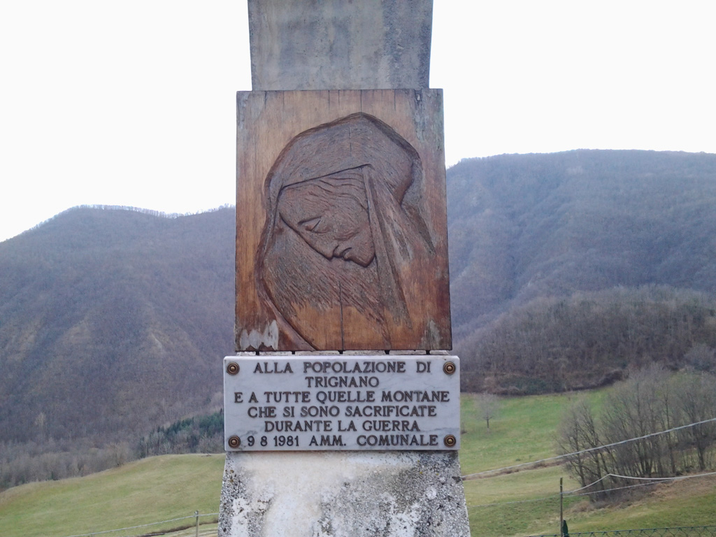 - Altorilievo rappresentante il volto di donna-madonna sofferente a sottolineare il sacrificio dei civili durante la guerra.
