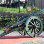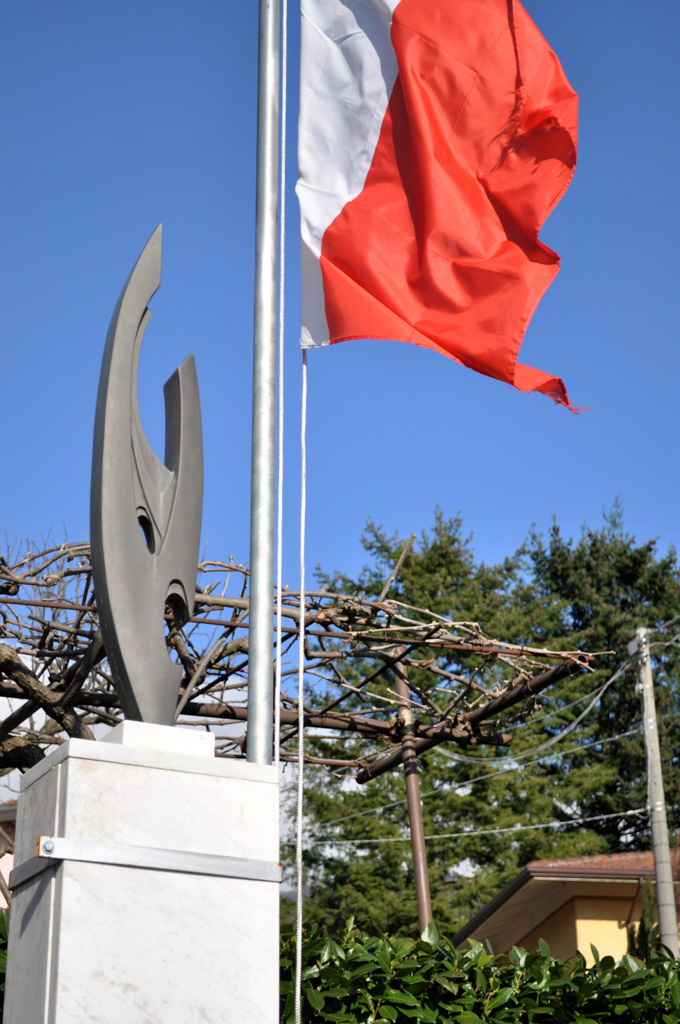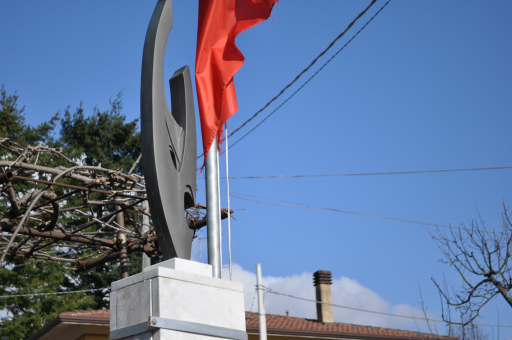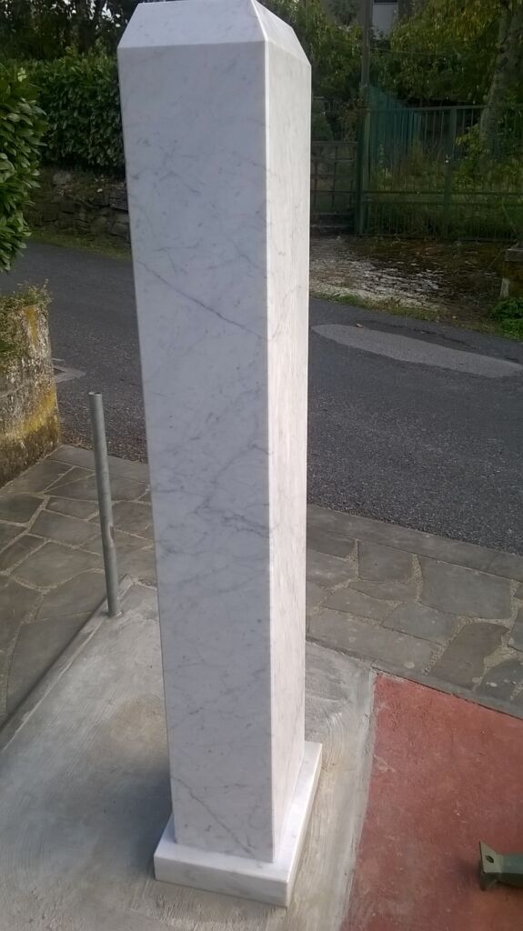 - Pilastro e lastre in marmo bianco; scultura e cannone in bronzo