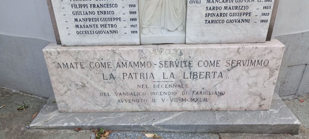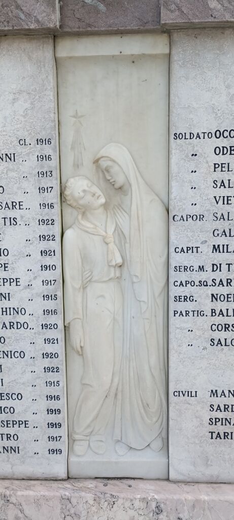 - Monumento in pietra, lastre in marmo, elementi decorativi in bronzo