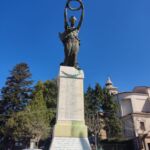 - Basamento a parallelepipedo in marmo (botticino), sormontato da una statua bronzea. Su tre lati del basamento sono incisi i nomi dei caduti e un’iscrizione commemorativa; decoro superiore un festone di foglie a rilievo.