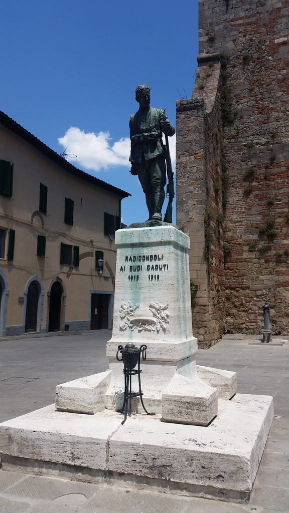 - Basamento in alto: "RADICONDOLI / AI SUOI GLORIOSI CADUTI / 1915 1918".