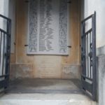 cella, lapide a sinistra: MCMXV - MCMXVIII/ ALBERGHINI GIULIO/ BALBONI GIUSEPPE/ BATTAGLIA UMBERTO/ BATTAGLINI ALFREDO/ BEDANI ANTENORE/ BELLINI ARTEMIO/ BELLINI ETTORE/ BENATI ADRIANO/ BERGAMASCHI PALMIRO/ BERGAMINI DESIDERIO/ BERGAMINI GIACOMO/ BERSELLI NAPOLEONE/ BIAGINI GIUSEPPE/ BIANCHI ARTURO/ BIANCHI GIUSEPPE/ BOARINI RIZZIERI/ BONETTI ORESTE/ BRATTI FRANCESCO/ BREVEGLIERI SERGIO/ CALLEGARI MARIO/ CAMPI DINO/ CARLETTI FRANCESCO/ CARLETTI LUIGI ERNESTO/ CESARI POMPEO/ CASELLI ANTONIO/ CASELLI ANTONIO/ CASELLI VINCENZO/ CASTALDINI MARIO/ CAVALLINI FERNANDO/ CAVALLINI GIOVANNI/ CINESI BIAGIO/ COVEZZI UMBERTO/ CRISTOFORI GUELFO/ CRISTOFORI SANTE/ DAVI ANTONIO/ DONDI ARMANDO/ DONDI OSVALDO/ FABBRI ODOARDO/ FANTINATI GIUSEPPE/ FANTONI ALFREDO/ FELLONI GAETANO