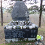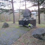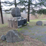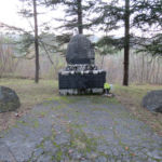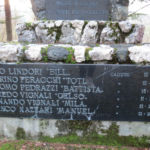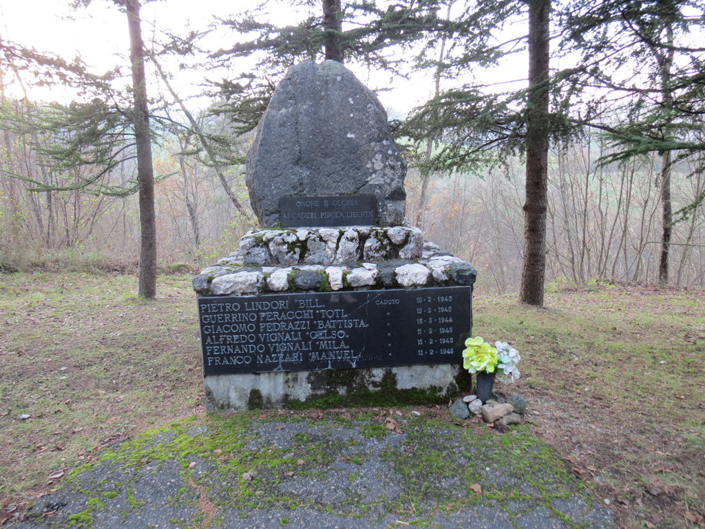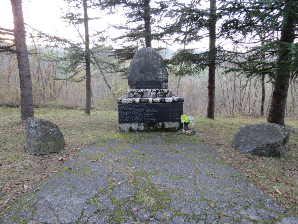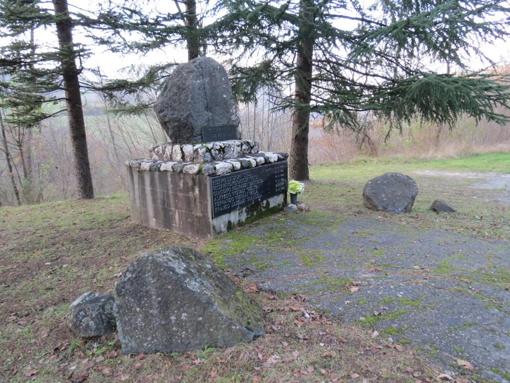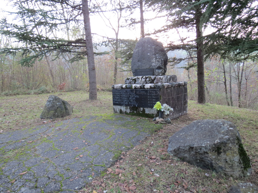 - Basamento in marmo con pietra, sopra un masso di medie dimensioni; lastra in marmo.