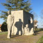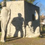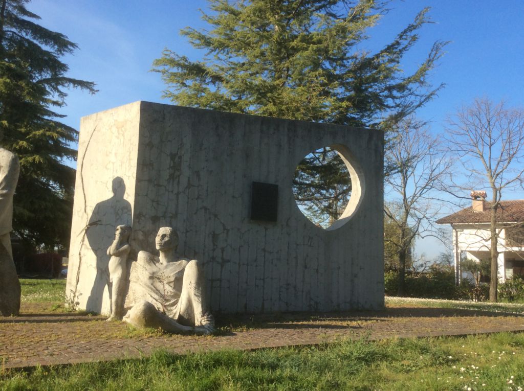 - Il monumento, situato in un'area verde, è realizzato in cemento.