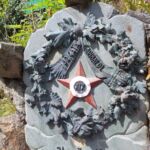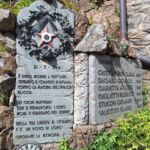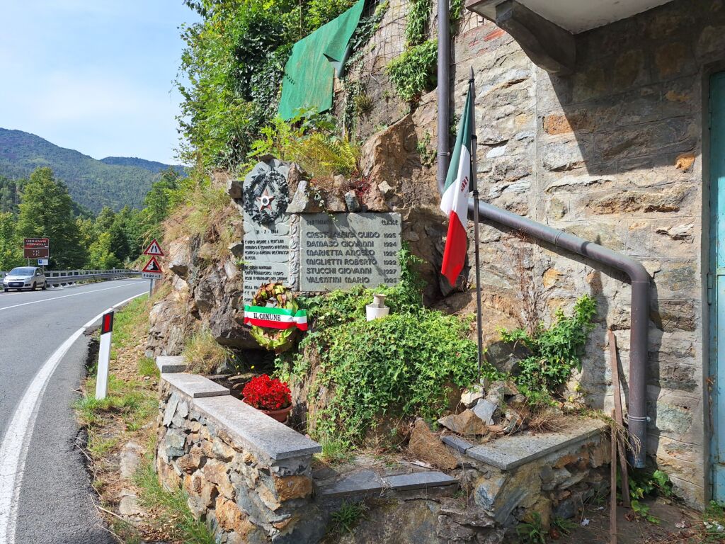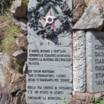 - In alto sulla pietra di sinistra è scolpita una corona di rami d'alloro e di quercia legati da un nastro su cui è presente la scritta BRIGATA GARIBALDI. Al centro della corona è presente una stella pentastellata verniciata di rosso e con la scritta XIX.