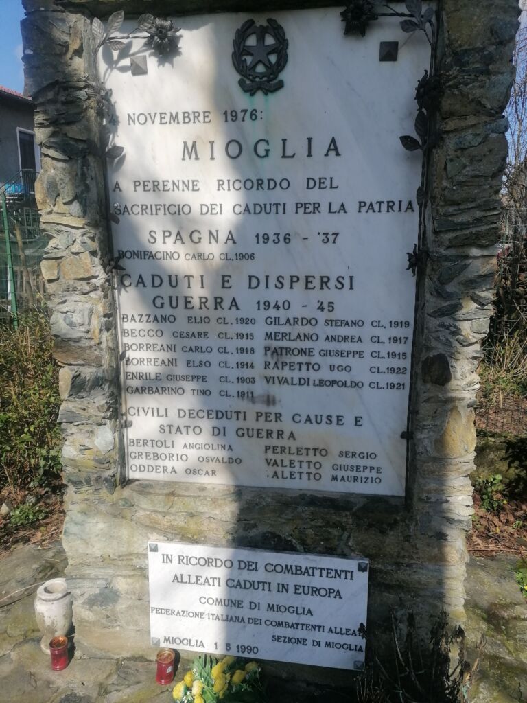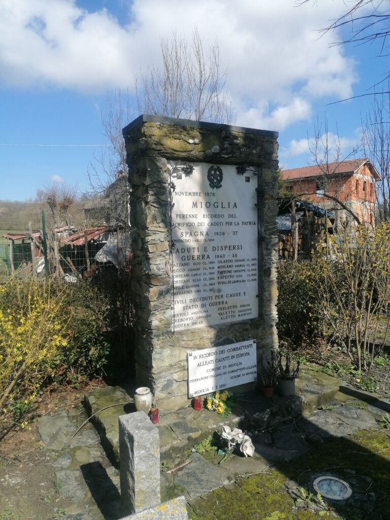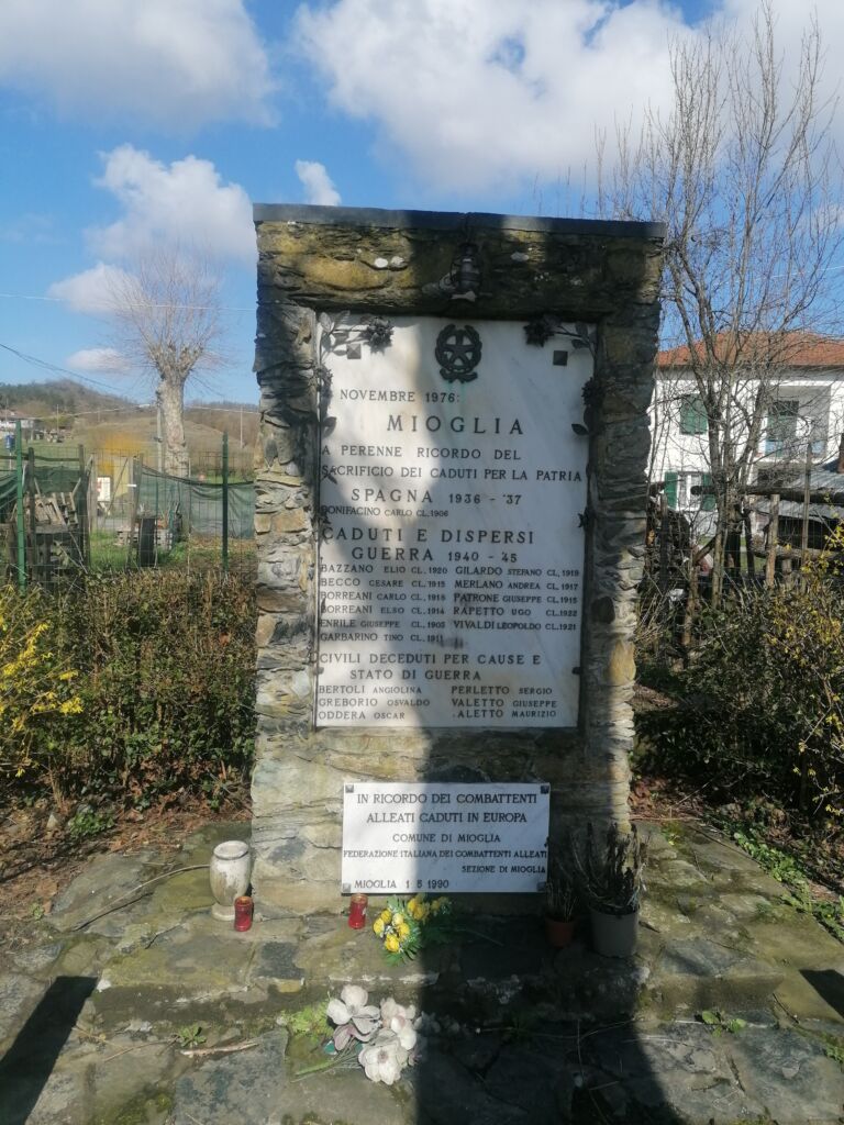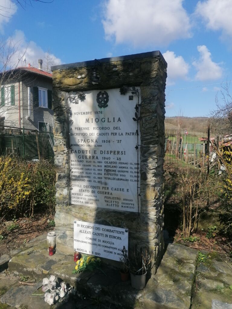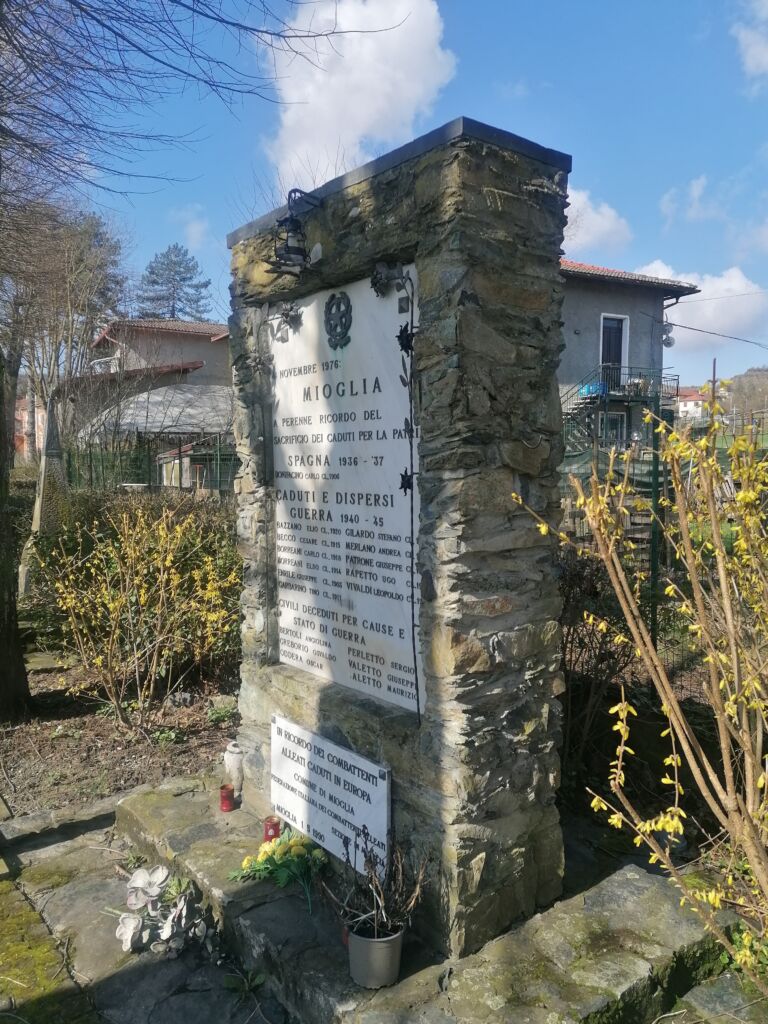 - Il monumento fa parte del Percorso della rimembranza del Comune di Mioglia ed è dedicato ai caduti della Guerra civile spagnola, della Seconda guerra mondiale e ai caduti alleati in Europa.
