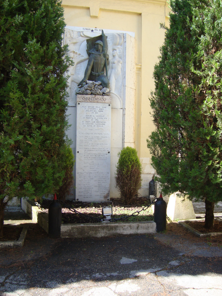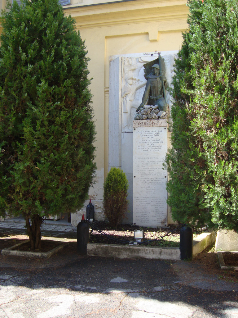 - Marmo per la struttura, la lastra e il bassorilievo; bronzo per la statua