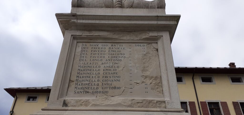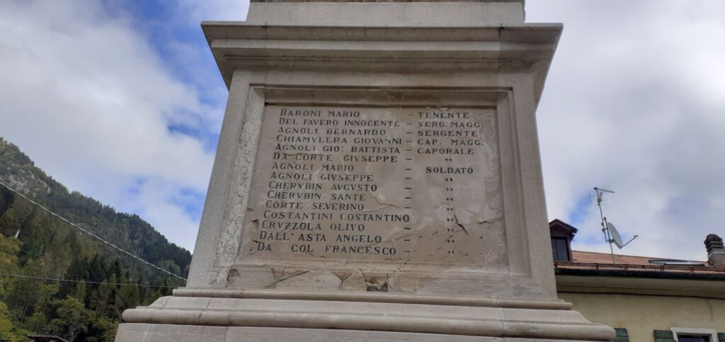 Ai lati l'elenco dei 30 Caduti di Valle di Cadore: