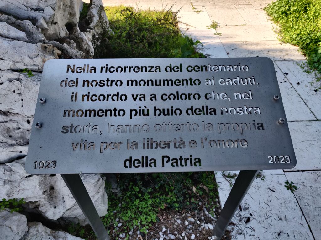 - Il monumento è stato inaugurato nel 1923. Nel 2023 è stata collocata la targa metallica che affianca il monumento.